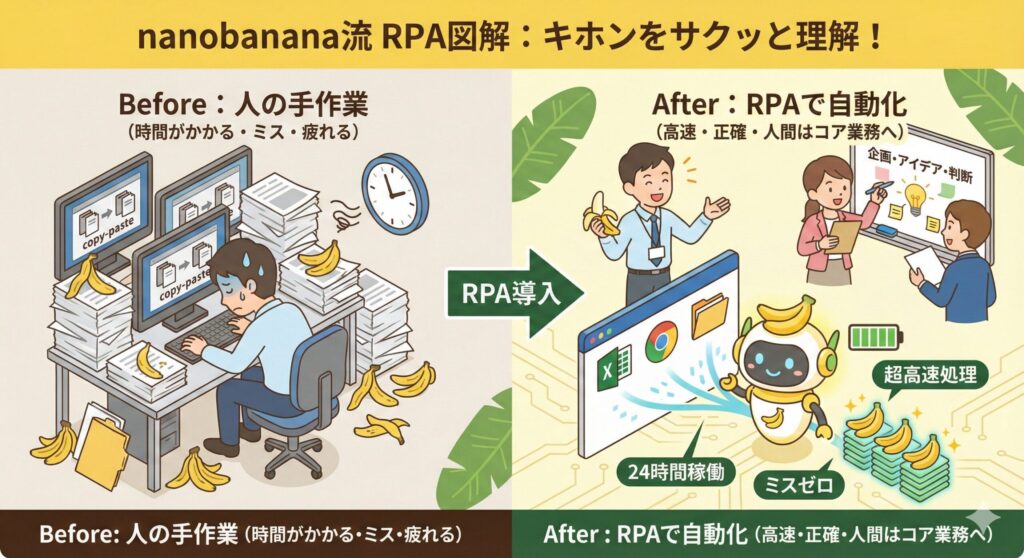 - 理由: フォーマットが決まっており、判断の余地がない「単純作業の繰り返し」だからです。RPAの方が高速かつ正確に処理できます。