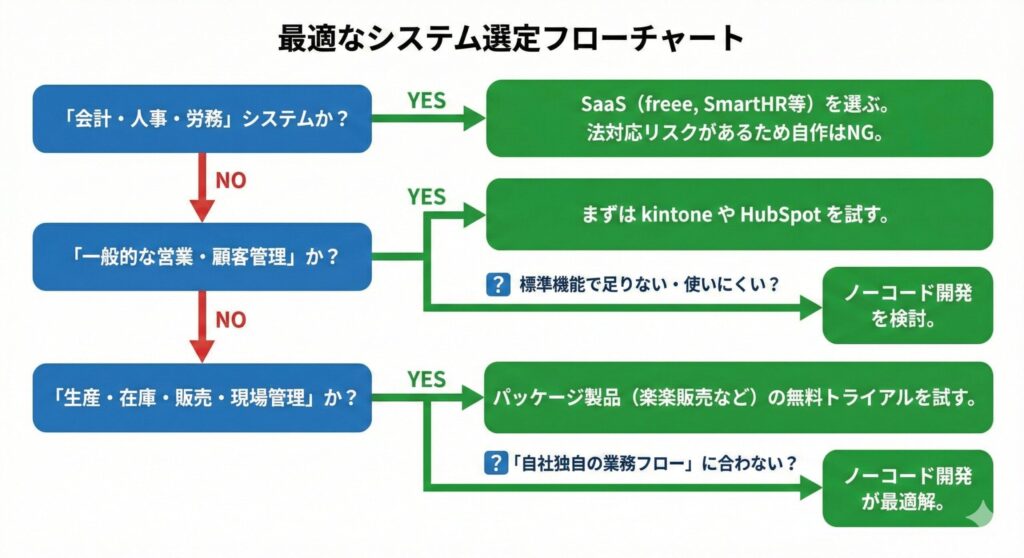 最終的にどう選べばいいのか? 以下のフローチャートで判断してください。