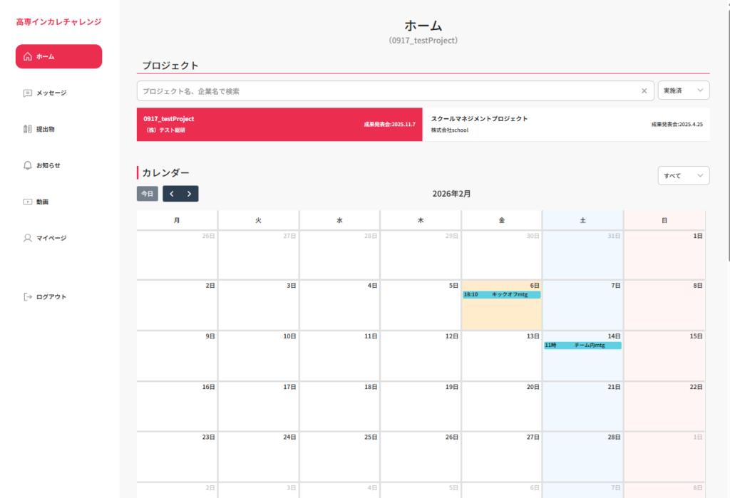 プロジェクト概要 N社が主催する高専生向けハッカソン「高専インカレチャレンジ」の運営を担う独自プラットフォームです。チャット・お知らせ・スケジューリングなどプロジェクト進行に必要な機能をすべて一つのPF内に集約し、主催者側が主体的に管理・運... -