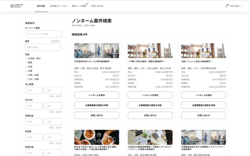 M&A案件検索・営業支援プラットフォーム