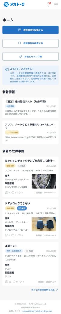 自動車整備士向け故障事例共有SNS「メカトーク」